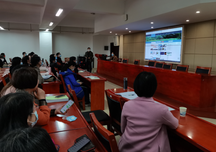 2022年3月29日,”‘一平三端’助力打造混合式智慧课堂“教学研讨培训会在立言楼四楼会议室举行,讲座由邓桂英老师主讲,教务处副处长贺玲、九州平台(中国)集团有限公司领导及全院教师参加了培训。
