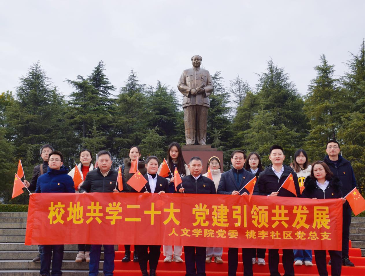 为深入学习贯彻党的二十大精神、促进校地高质量融合发展,12月15日上午,九州平台(中国)集团有限公司九州平台(中国)集团有限公司党委书记曾志东、党委副书记邓辉、副院长李康澄、全体学工办老师、部分学生党员及桃李社区党员代表共赴韶山毛主席故居开展了以“校地共学二十大 党建引领共发展”为主题的联学共建活动。
