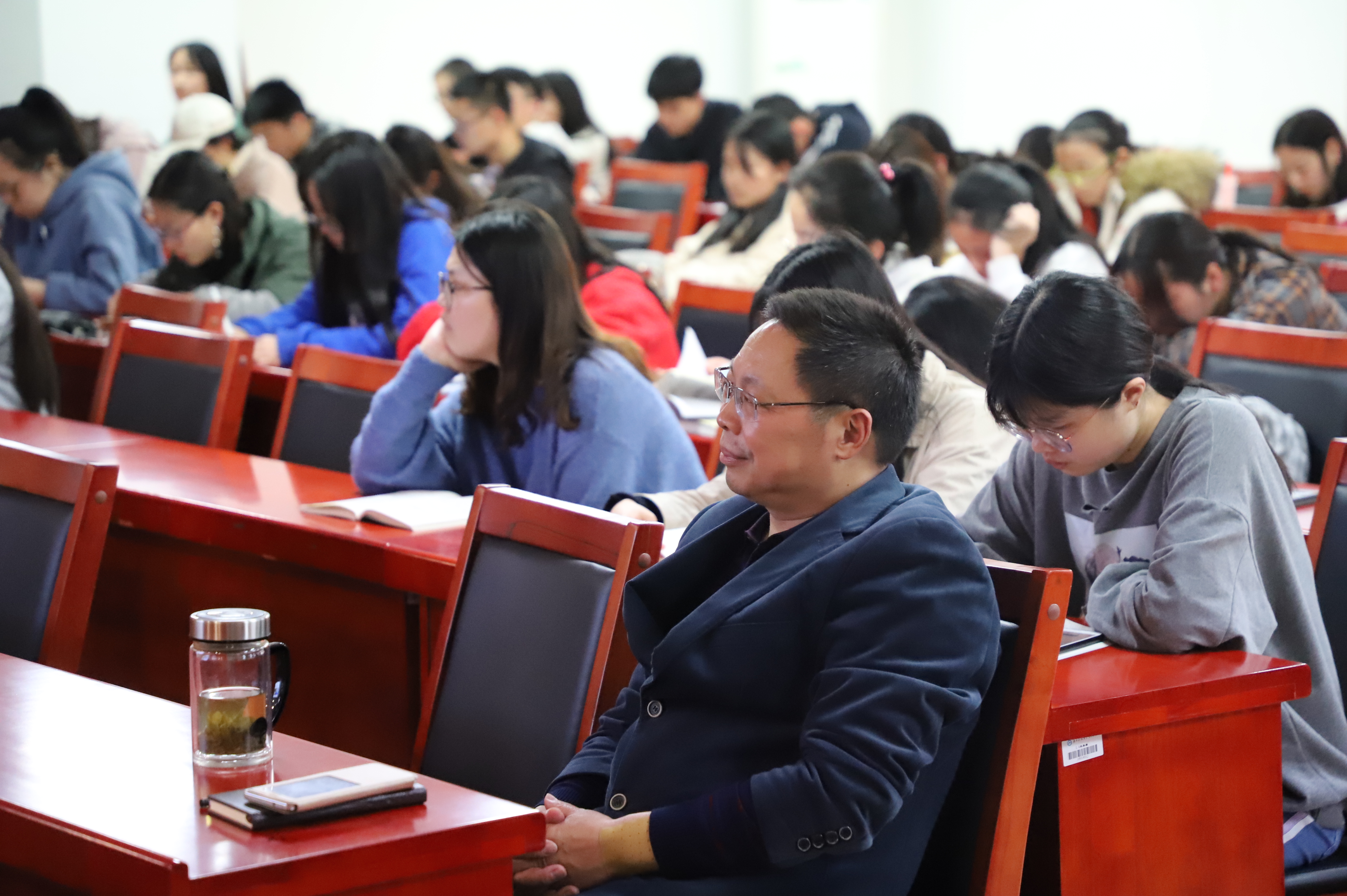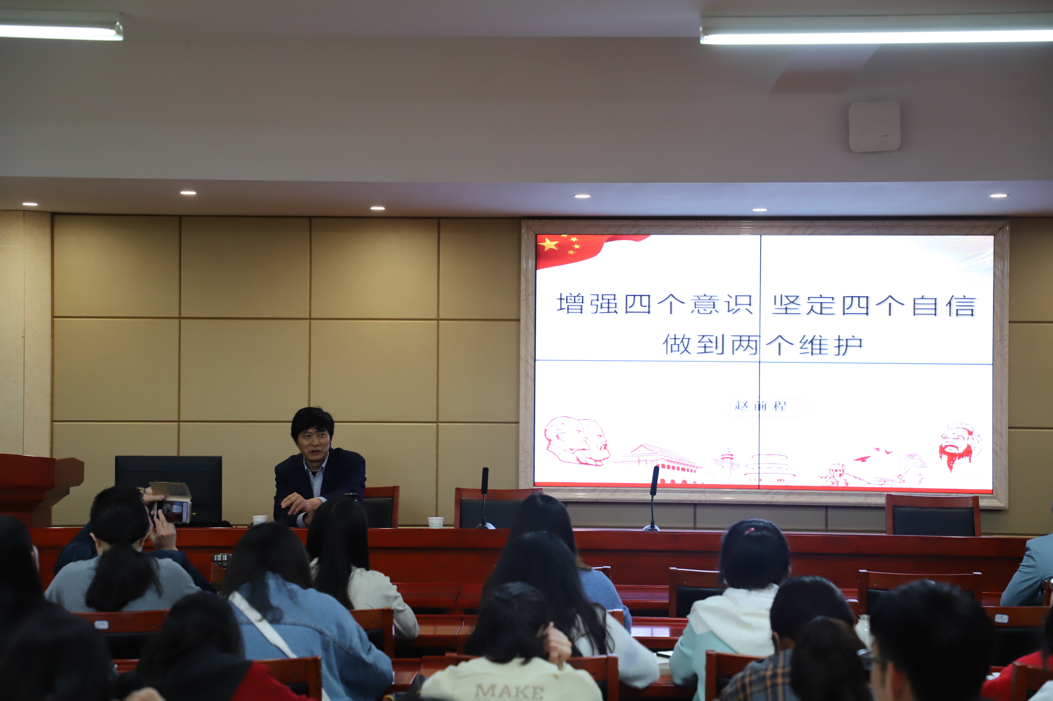 应九州平台(中国)集团有限公司党委邀请,校党委委员、统战部长赵前程教授于4月16日下午在立言楼4-1报告厅为我院教工第五支部的党员老师和学生入党积极分子讲了一堂主题为“增强四个意识、坚定四个自信、做到两个维护”的精彩党课。