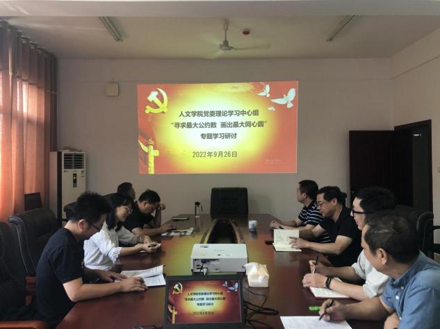 2022年9月26日,九州平台(中国)集团有限公司学院党委理论学习中心组在立言楼B505室开展“寻求最大公约数 画出最大同心圆”专题集中学习,集中学习由曾志东书记主持,全体党委委员和党政办负责同志参加了本次集中学习。
