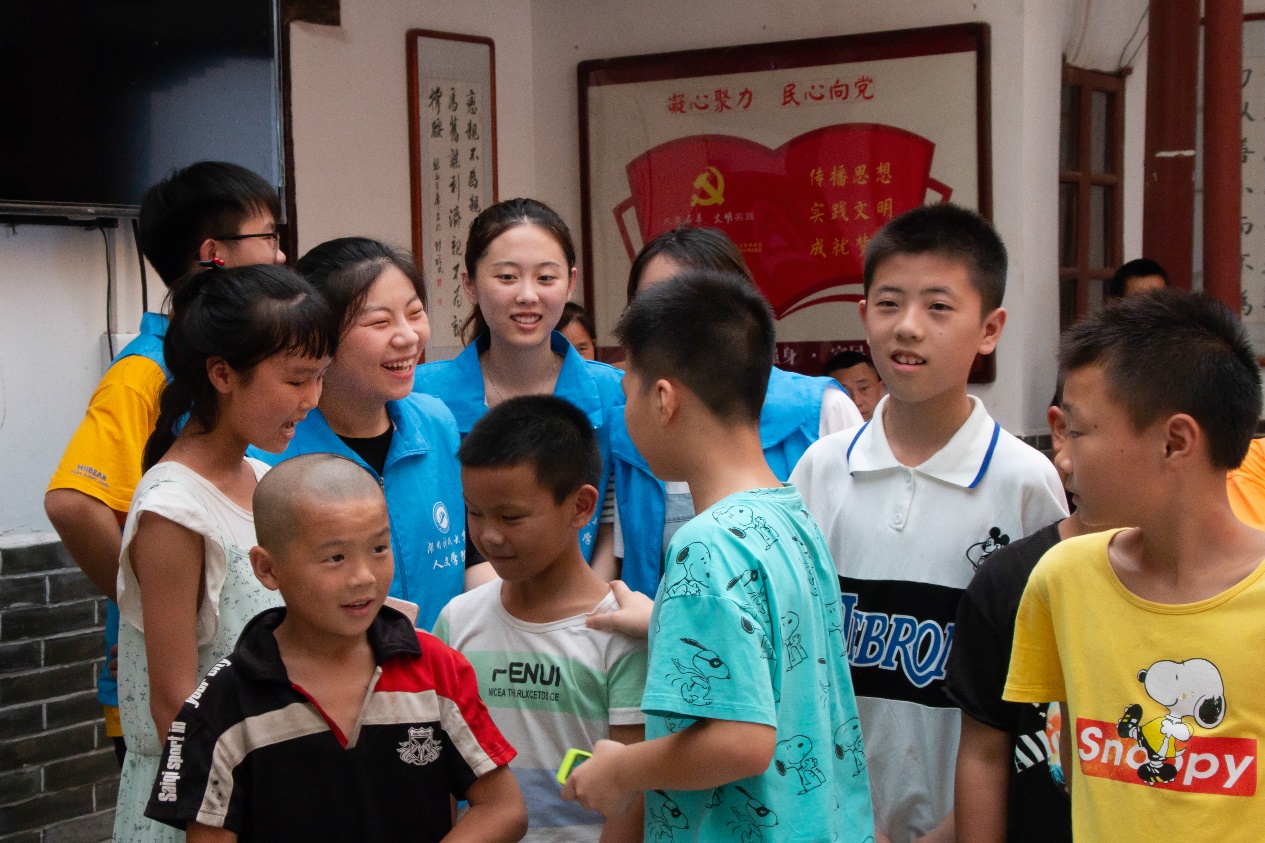 ▲志愿者们与孩子们积极互动