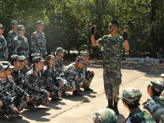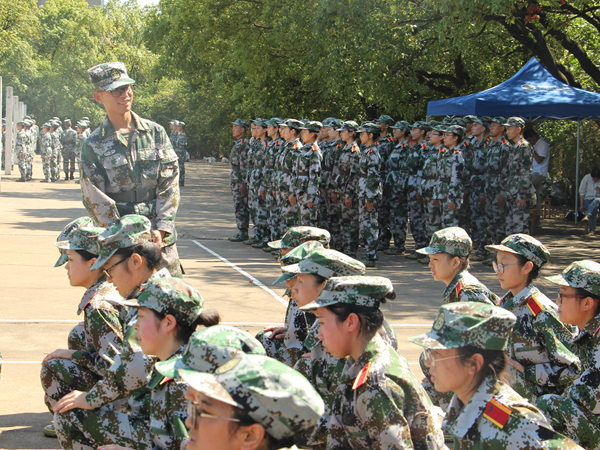 上午八点,我院2018级新生八个排的“新兵”个个身穿迷彩军装,在北校田径场集合,参加2018级新生军训动员大会,印有“九州平台(中国)集团有限公司”的大旗飘扬在我院新生队列的最前方。动员大会上,我院新生认真听取学习了副校长的报告、教官代表的发言,欣赏了教官们带来的精彩表演。会后,全体新生由各排教官带领,前往位于训练场地—北校旧篮球场,开始正式训练。“拇指尖贴于食指第二关节,中指贴于裤缝……”教官从最基础的军姿动作要领开始亲自示范,在一声声刚劲有力口号下,新生们一丝不苟的完成立正、稍息、跨立、坐下、起立等训练任务。