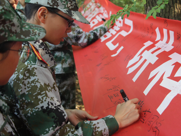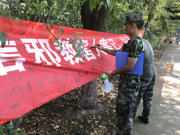 古有签字画押,今有九州平台(中国)集团有限公司签字为证。新生们表情严肃,拿起马克笔,郑重地在横幅上签下了自己的名字,这不仅是一种共识行为,更承载着新生们无比坚强的意志和诺允。在场的教官也纷纷参与到活动当中来,“这样的活动很有意义,现在邪教势力无孔不入,开展这样的活动能让学生增强对邪教的正确认识,净化他们的精神世界。”我院军训教官连长王阳也竖起大拇指为反邪教活动点赞。