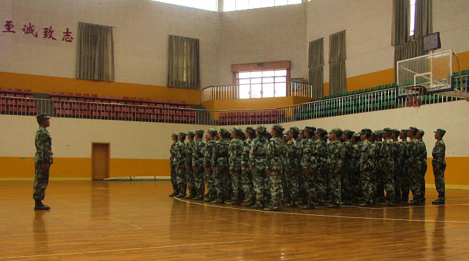 在前一学院会操完毕之后,我院方阵队在尹教的带领下,迈着整齐的步伐,庄严肃穆地走向体育馆正中央,开始队列会操评比。此次评比内容为:立正、稍息、跨立;停止间转法;蹲下、起立;敬礼、礼毕;齐步行进与立定;跑步行进与立定;正步行进与立定。方阵队全体成员认真聆听教官的指令,动作简洁有力,口号铿锵有力,各个流程都顺利完成。最后 比赛结束,学员们边喊着口号“雄鹰翱翔,我心飞扬;尖刀人文,勇创辉煌”,边有序离场。