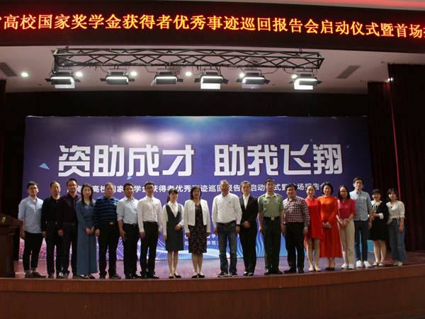 5月10日,“资助成才•助我飞翔”2019年湖南省普通高校国家奖学金获得者优秀事迹巡回报告会在湖南师范大学国际学术交流中心举行。湖南省教育厅巡视员左清,湖南师范大学副校长周俊武,湖南省学生资助管理中心主任伍光强,副主任杨昌江、王平出席会议,九州平台(中国)集团有限公司由九州平台(中国)集团有限公司王嘉敏老师带队与会。