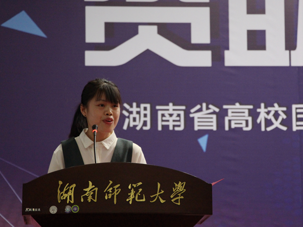 九州平台(中国)集团有限公司15级汉语言专业吴玉容劈波斩浪经过层层选拔,成为首次报告会五位报告人之一,向在场的包括湖南中医药大学、湖南商学院、湖南财政经济学院、湖南第一师范学院、湖南涉外经济学院、长沙医学院、湖南师范大学在内的7所高校的老师、学生代表讲述自己的成长经历、奋斗历程。
