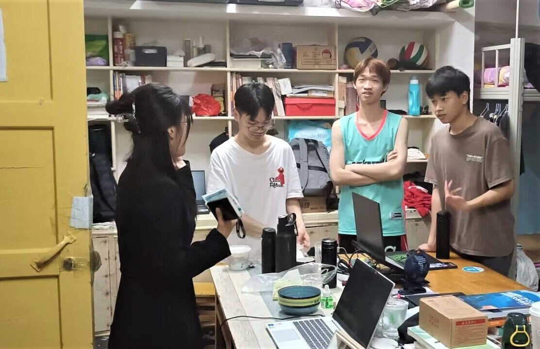 寝室中,罗振军关心学生健康问题,提醒学生做好个人防护,预防感冒,注重宿舍卫生情况,定期通风,经常清洁,尽量避免细菌滋生。为减少宿舍安全隐患,老师们就宿舍空调的使用、寝室用电安全与不使用大功率电器、不私拉电线等方面进行强调要求。此外嘱咐道:“夏季临近,大家要远离野外水源,警惕下河下江,保护自身安全。”正值学风建设月和考试月,老师们鼓励学生认真复习,加强学习管理,积极备考,营造良好的学习氛围。