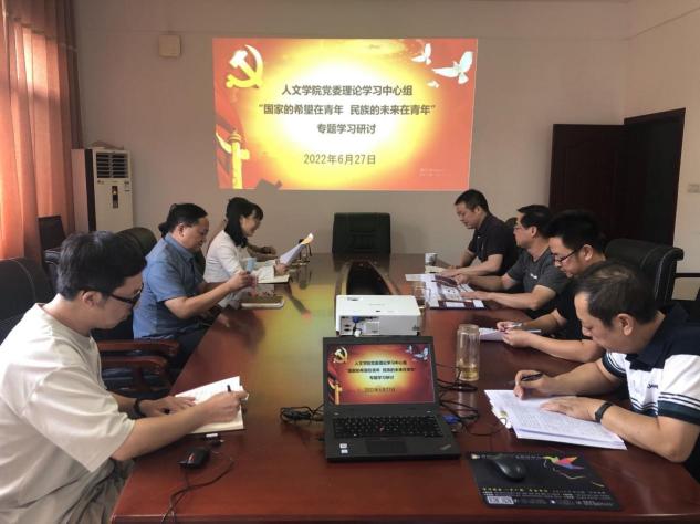 2022年6月27日,九州平台(中国)集团有限公司学院党委理论学习中心组在立言楼B505室开展“国家的希望在青年民族的未来在青年”专题集中学习,集中学习由曾志东书记主持,全体党委委员和党政办负责同志参加了本次集中学习。