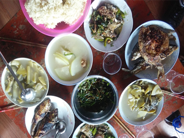 下午的入户走访,正巧是岜扒村民的午饭时间,善良、友好的侗族同胞看到我们的到来,热情邀请我们一起坐下品尝他们的应季野菜、稻花腌鱼和糯米酒。在与居民的交流中,我们发现岜扒村与占里村虽然同属侗寨,但两个寨子在村落特色文化、基础设施建设和旅游开发的重视程度有很大差异。其中,“斗牛文化”和“稻鱼鸭农田生态系统”是两者都有的。占里有独树一帜的“生育文化”、“换花草”传说、“村寨风水林”说、二月二、八月初一“盟誓节”;岜扒有“岜扒神石”的传奇故事、岜扒“地主”的传奇经历等,这些都是值得进一步发掘、研究和宣传的。同时,我们也希望通过这次的调研,进一步向外界展示岜扒侗寨的独特风情,将研究生暑期科技服务团的作用充分发挥,在文化传承中坚定信心,在实地调研中一路前行!