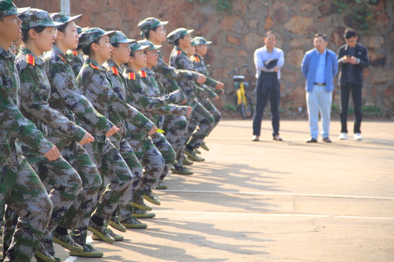 他们依次在各排队伍旁驻足,静静观看新生日常训练,训练场上,新生们身着绿军装,个个挺直身板,抖擞精神,军姿规范,口号嘹亮。“立正,稍息……一二一、一二一”在各排排长的口号下,新生们继续进行军训的学习内容。
