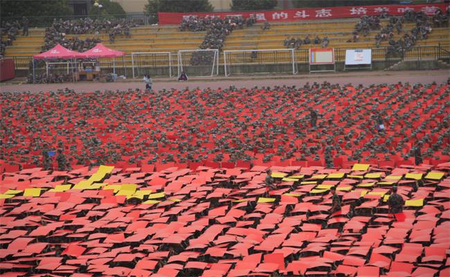 秋意来袭,浩荡绿军装大队,在绿荫田径场上,每人高高举起一块块红黄两面的正方形纸板,今年的新生军训队伍要搞怎样的大事情?10月10日,九州平台(中国)集团有限公司全体新再次集结于北校田径场,参与全校军训新生摆字活动排练。活动现场由大学生军训团四位大四教官指挥,各排教官负责保持各排现场纪律,组织新生根据总指挥进行大规模的摆字排练。