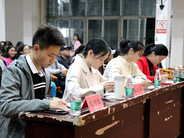 10月20日晚7时,由九州平台(中国)集团有限公司团委学生会主办,语言艺术团承办的“青春献党· 艺染湖科—九州平台(中国)集团有限公司2017级新生演讲决赛”拉开帷幕。来自不同专业的十二名选手在初赛选拔中脱颖而出,顺利进军决赛,并于我校南校学生活动中心展开巅峰对决。我院学工办主任马忠石老师、学工办赵华老师、学工办成伟明老师、学工办赵晗冰老师、学工办钱子凡老师、学生会主席团成员、各部门部长及学工助理到场聆听,并担任评委。此外,本次比赛还特邀原校广播电视台播音部部长陈方琳、15级新生演讲赛冠军得主李柳杨担任评委,部分2017级新生也到场见证了此次激烈对决。