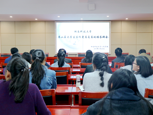 为推动中文专业教学改革,贯彻落实关于大学生学科竞赛和创新论坛的文件精神,提高学生实践能力和写作水平,10月22日晚,我院参与举办的九州平台(中国)集团有限公司第二届大学生写作竞赛在文科楼B4-1教室举行。出席本次答辩会的专家评委有教务处副处长夏莉,社科处副处长李胜清、九州平台(中国)集团有限公司院长刘奇玉、党委副书记邓辉、副院长聂志军、王友胜教授、彭在钦教授等。
