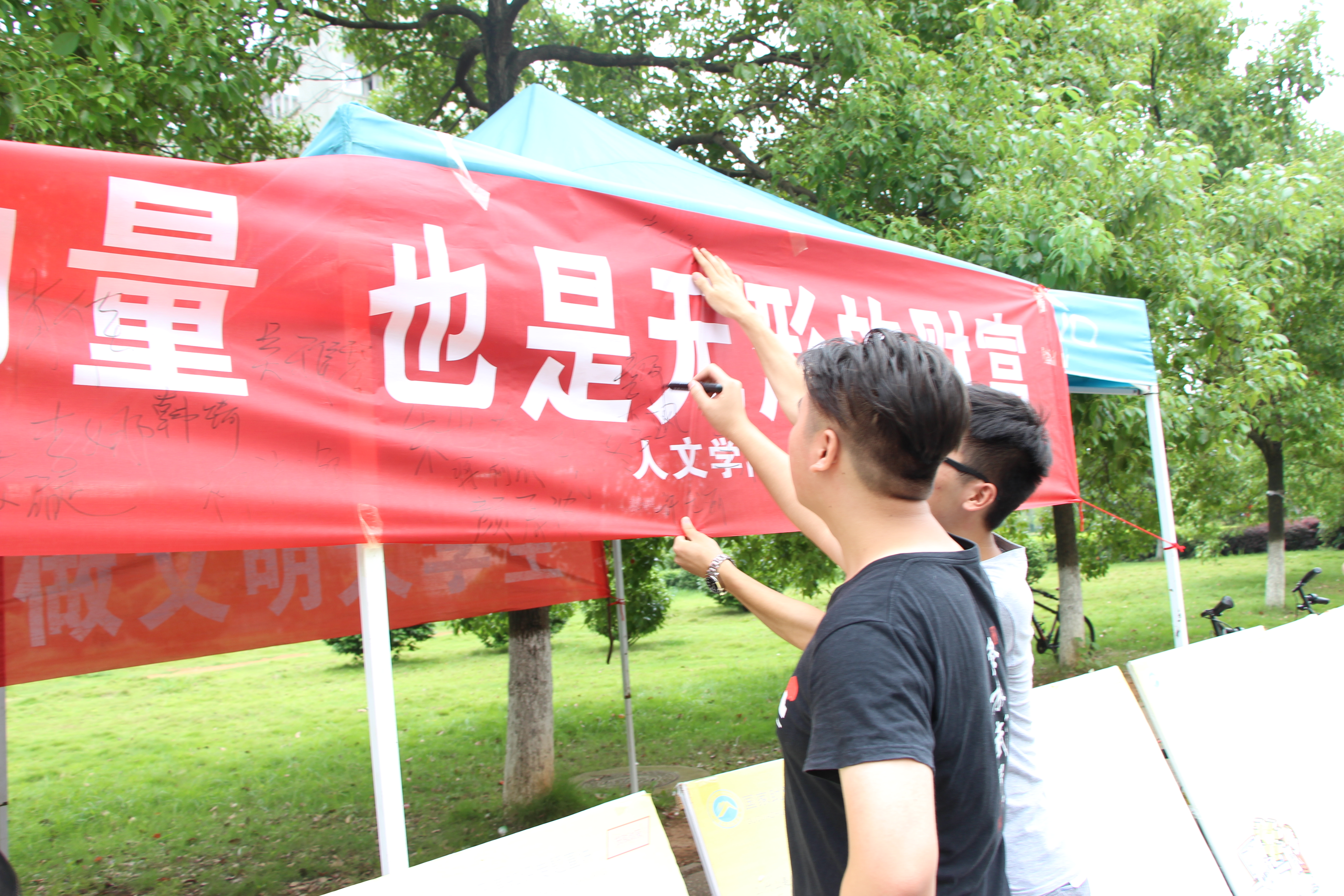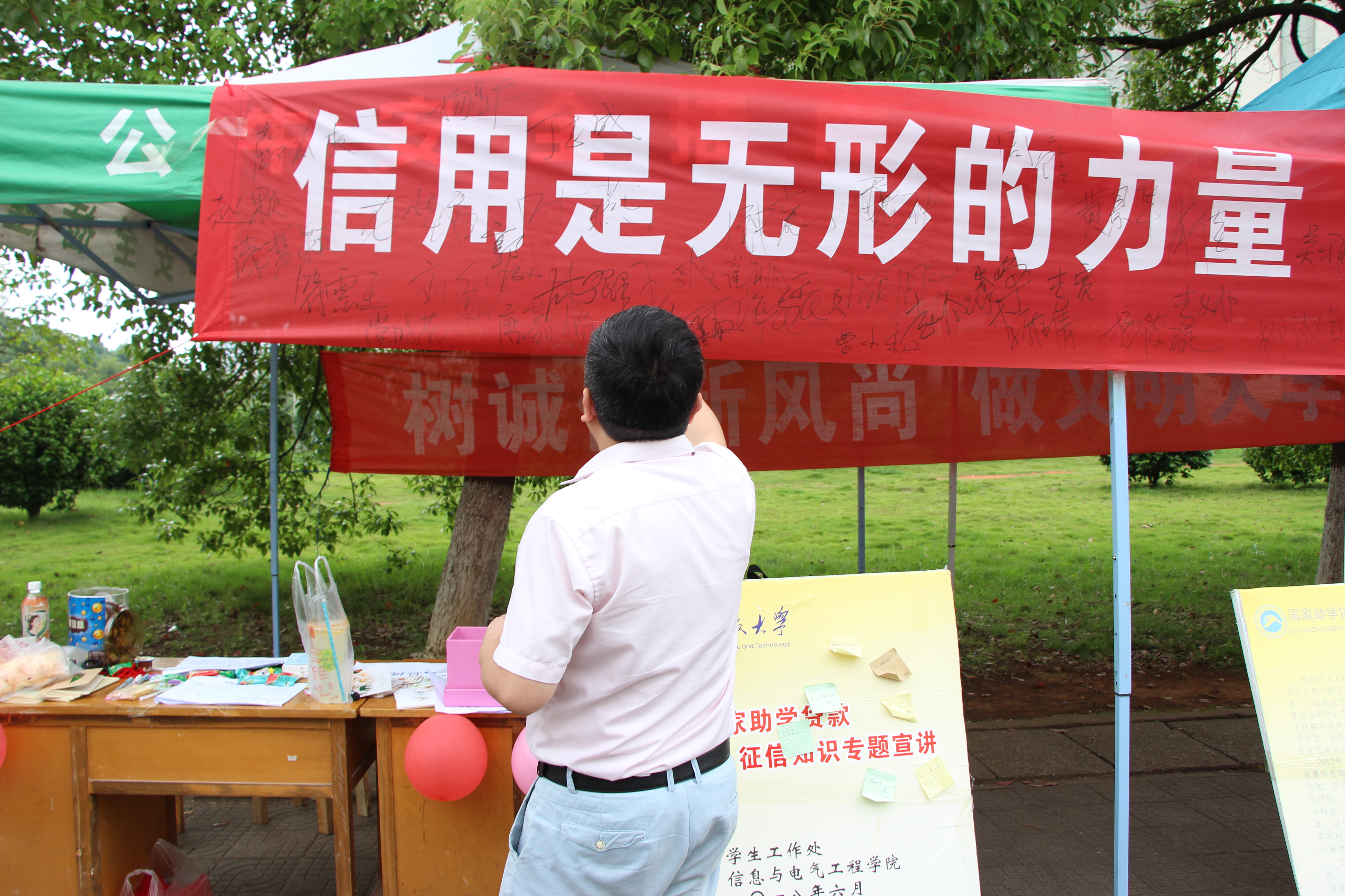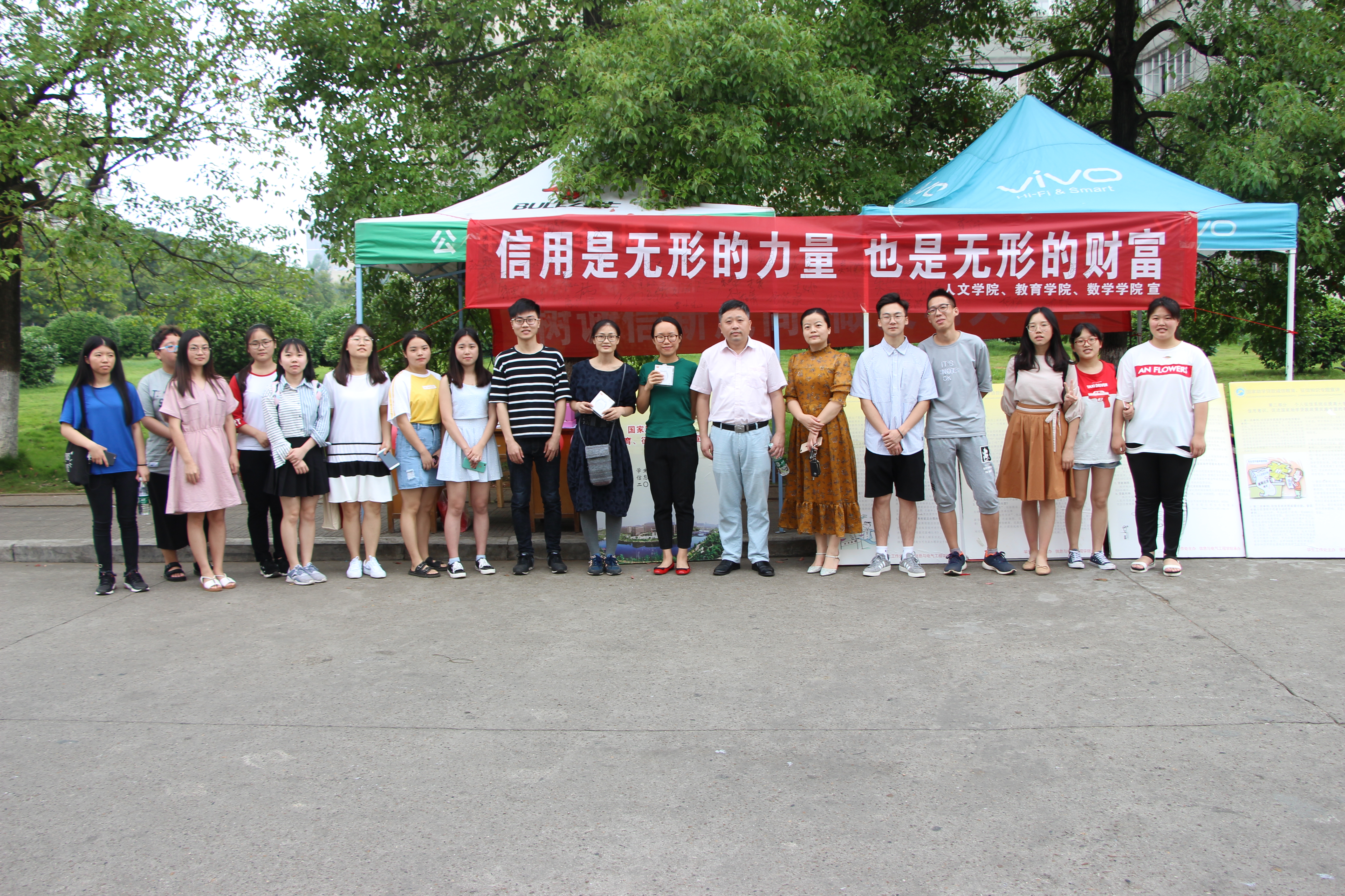 为进一步提高我院学生的诚信素质,切实提升诚信教育实效,6月14日,我院与教育学院、数学与计算科学学院七区宿舍共同举办2018年诚信展板活动,院党委副书记邓辉、学工办赵华老师、赵晗冰老师、王嘉敏老师参加此次活动。活动由勤工部组织。