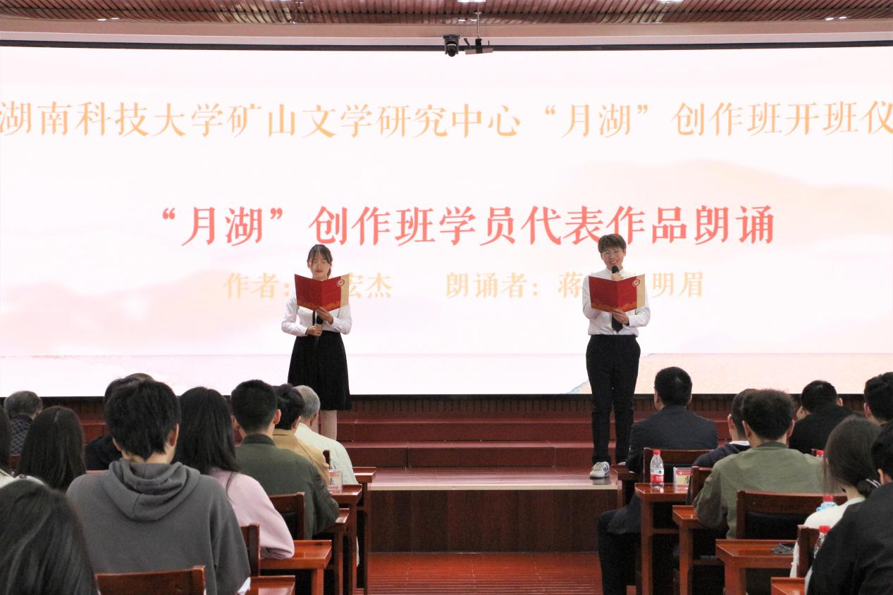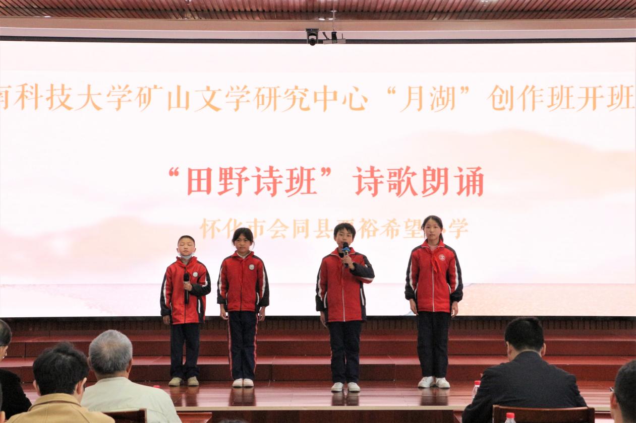 开班仪式上,周智华指出:“此次活动既是一次难得的学习契机也是重要的交流平台,这不仅有益于促进育人资源、提升我校人才培养质量,促进校园文化建设,同时有利于加强和拓展作家、读者和学者之间的交流,可以称得上是一次真正的文学盛会。”谭谈表示:“今天我们和你们聚在这里,是‘朝阳’和‘夕阳’的面对面,而月湖创作班正是你们的练军堂,希望你们可以抓住机会好好练习,未来可以成为一名英雄的作家。”吴投文在发言中传达了对创作班学员们的深切祝福,他表示,学校领导高度重视“月湖”创作班,在场的36位学员都是从九州平台(中国)集团有限公司脱颖而出的,“月湖”创作班将致力于强化学员的写作兴趣、提高学员的写作技能,让创作班全体学员成为现代化新型写作人才。仪式在创作班学员代表与怀化市会同县粟裕希望小学“田野诗班”四位小学生的朗诵声中圆满结束。