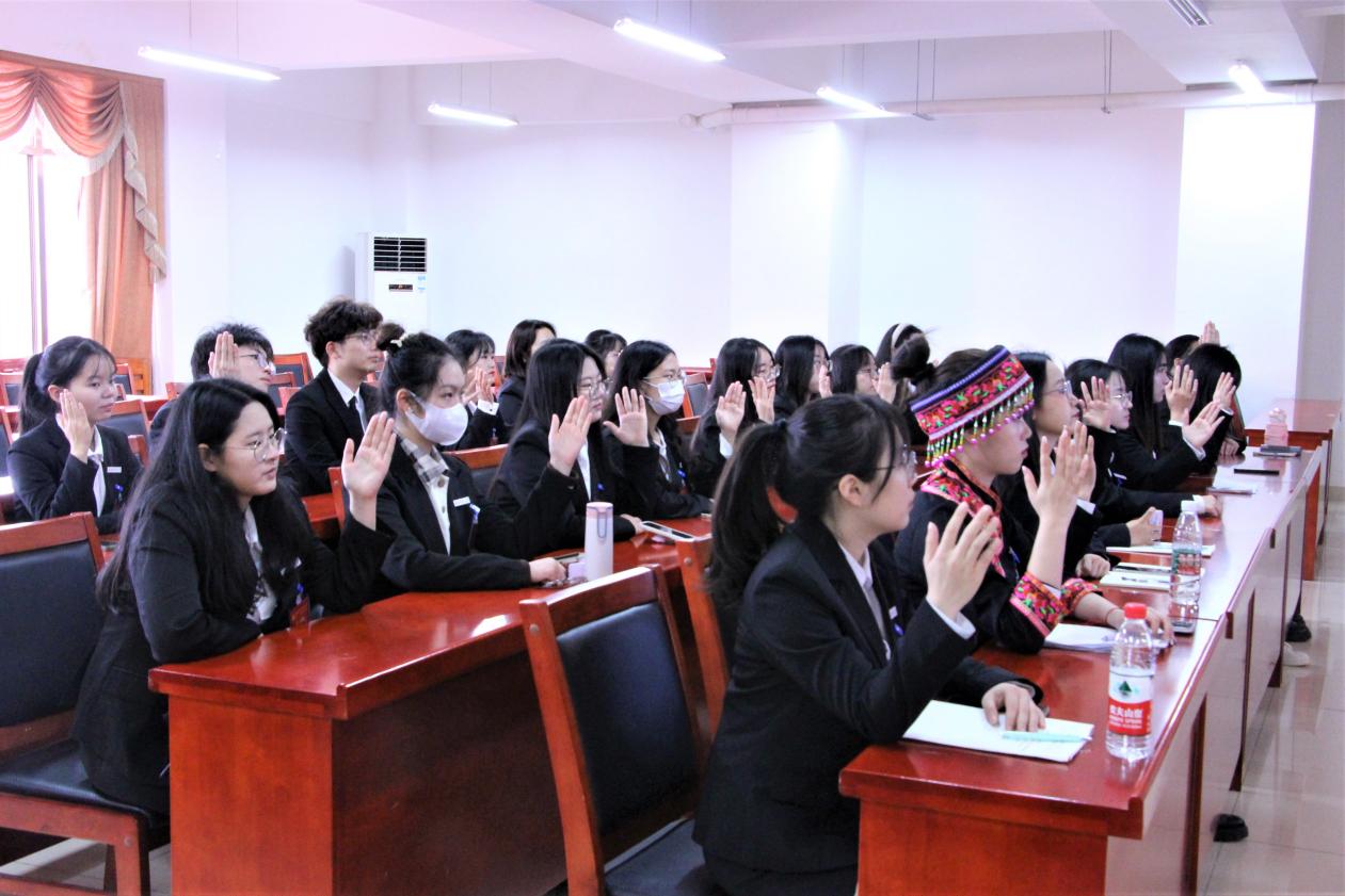 本次分团会议主要针对学生代表大会有关议程与注意事项进行宣讲,同时学习贯彻大会精神,渗透新时代思想。会后,谈及对此次会议的看法和感想,学生代表舒诗琴表示,通过学习习近平总书记关于共青团成立一百周年相关会议精神,她深刻认识到,青年应该朝气蓬勃、富有梦想,争做矢志不渝跟党走的新时代青年。
