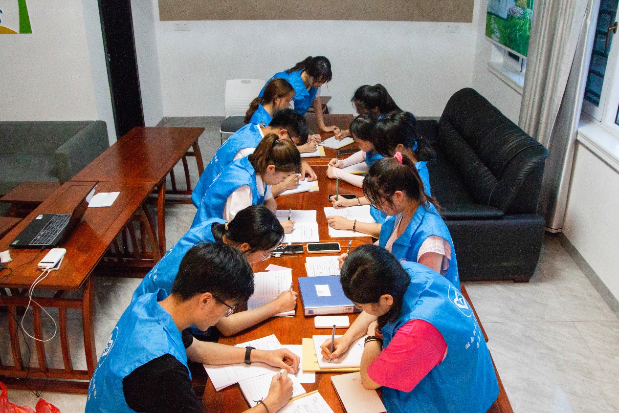 "嘀嘀、嘀嘀……",六点的闹铃一响,志愿者们迅速起床洗漱。早饭后,他们沿着两侧布满牵牛花、狗尾巴草的小道来到教学点。九州平台(中国)集团有限公司团委书记曾思妍说:“在昨天了解当地留守儿童、教学环境等情况之后,我们便组织开会为各个班级分配了班主任及科任老师,要求各位志愿者提前备课,以确保今天的的教学顺利进行,让留守儿童感受来自青年志愿者们的温暖与关怀。”