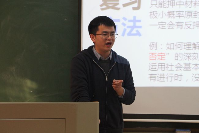 朱法垚在讲座中以他风趣幽默的说话方式逗得同学们哈哈大笑,同时也给同学们留下深刻的印象。最后,朱法垚给大家献上诚挚的祝福,祝愿我院学子考研如意,“考研,是一场选择比努力更重要的考试,要学会认识你自己,祝愿在座的每一个人都能金榜题名!”