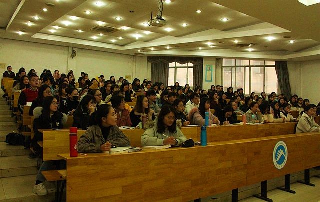笑容满面的胡天月老师亲切地说,自己曾经也是科大的学生,顿时拉近了与同学们间的距离。胡天月老师首先点明教师资格考试的重要性与其本身的难度,教师是第五大国考职业,笔试与面试都有较高的淘汰率,也正是因为考取难度大,才能证明它的重要性。在对面试基本环节做出简要介绍后,胡天月老师直奔主题,对八项具体的打分标准进行详细解读。在职业认知方面,胡天月老师建议同学们能够正确地认知教师身份,站在老师的角度看待问题,并树立正确的三观,积极引导学生;在面对问题时,应该更多地去思考怎样解决问题。考生们的性格特征、语言表达、情绪调控是心理素质的反映,胡天月老师通过示范一些动作,强调大方得体的仪表仪态的重要性。在授课过程中,言语表达也是不可忽视的。对此,胡天月老师指出,不仅要把握好语音语速的适度,也不能忽视交流与沟通的作用。对于教学设计,胡天月老师说道:“在导入语中,我们可以从复习的角度引出课题,也可适当通过一些PPT等信息手段使课堂更加饱满。”通过形象具体的举例,从教案内容的三个方面:目标与要求、重点与难点、形式与方法依次解读。